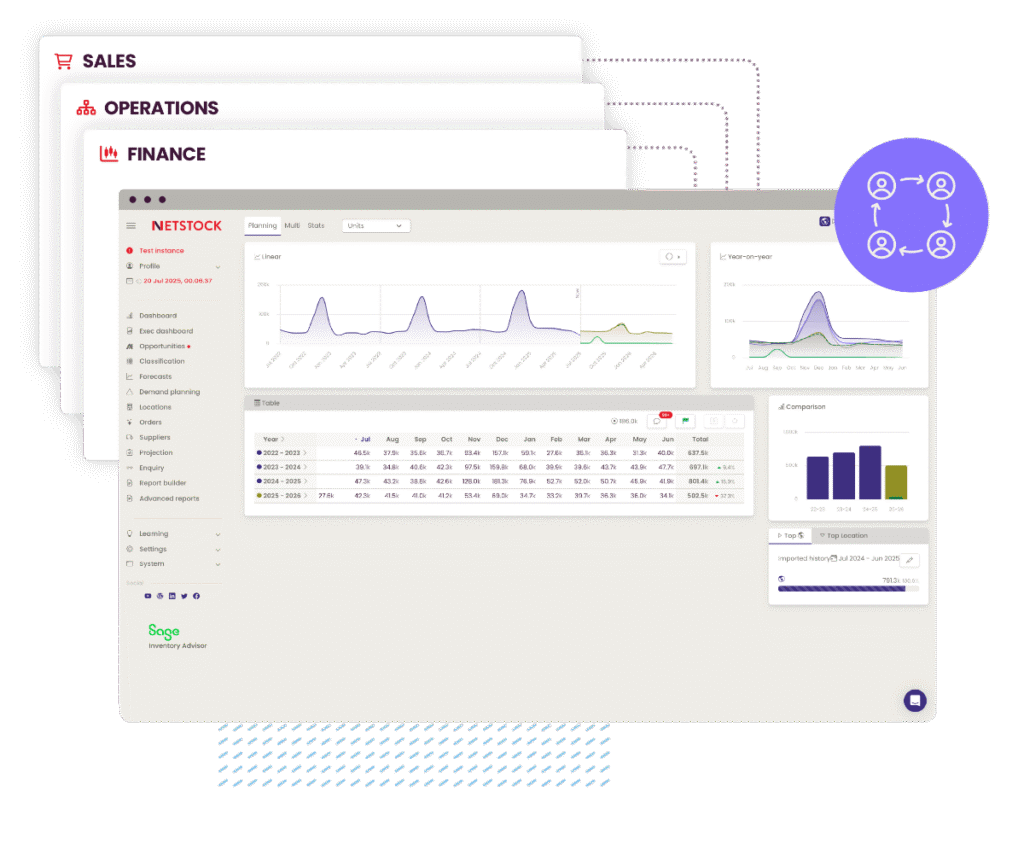Netstock’s S&OP capabilities align demand forecasts with capacity planning and financial goals, creating a unified plan across all functions. By integrating sales projections with operational constraints, businesses balance supply, demand, and budget targets while maintaining agility to respond to market changes.